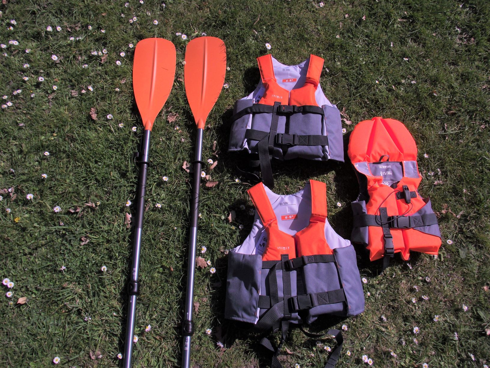 A votre disposition 2 canoës: pour chaque canoë 2 places adultes + 1 place enfant avec tout le matériel nécessaire : 2 pagaies, 3 gilets de sauvetage et 1 bidon étanche de 10L, ainsi que le matériel nécessaire au transport: 2 barres de toit gonflables adaptables à tous véhicules et 2 sangles pour fixer le canoë.
